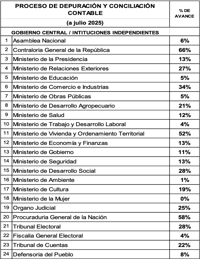 El proceso ha iniciado con el Sector Gobierno Central e Instituciones Independientes, aplicando el Manual del Proceso de Depuración y Conciliación Contable orientado al saneamiento de la información financiera.